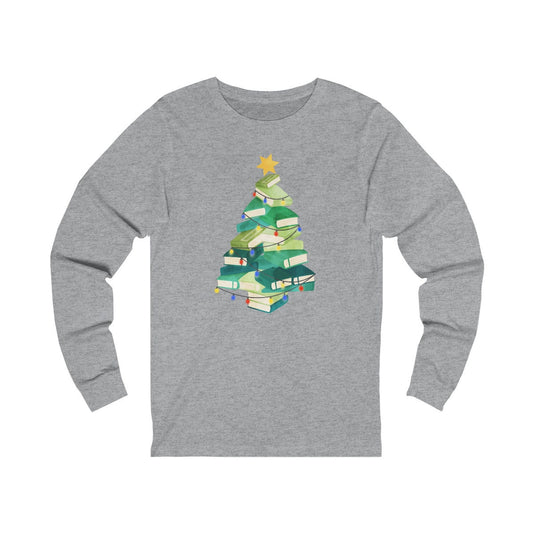 Bookish Tree Long Sleeve Christmas Tshirt for Reader Teacher Librarian Holiday Shirt for Book Club Christmas Party