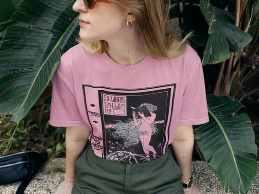 Ex Libris Bookish Tee Vintage Book Plate Tshirt for Book Lovers Fun Bookish Tee for Librarian Reader Woman Nude Retro Bookish Shrit Nerdy